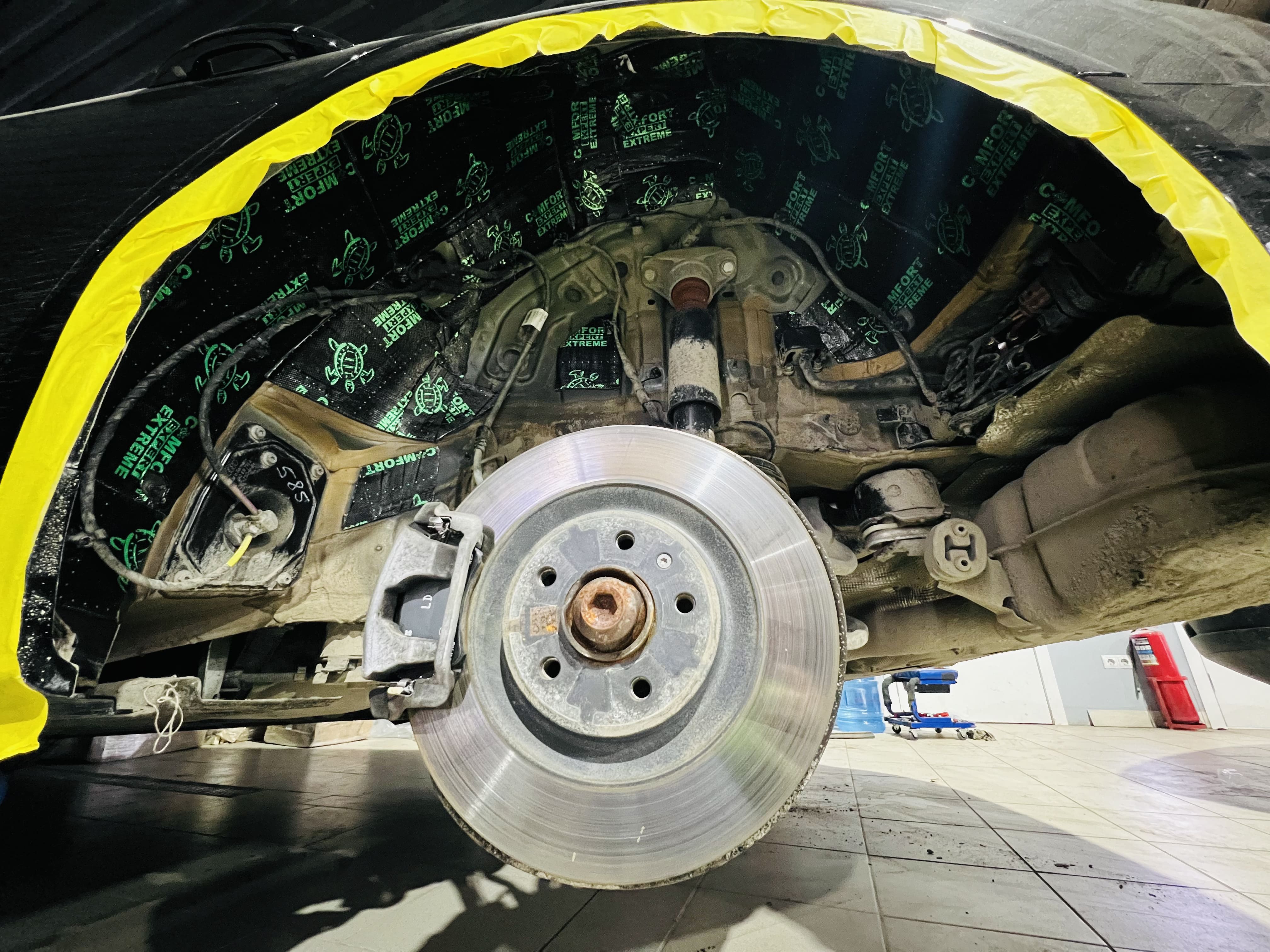 На колесные арки нанесли виброизоляцию Comfort Mat Extreme, обеспечивающую надежную защиту от шума и вибраций.