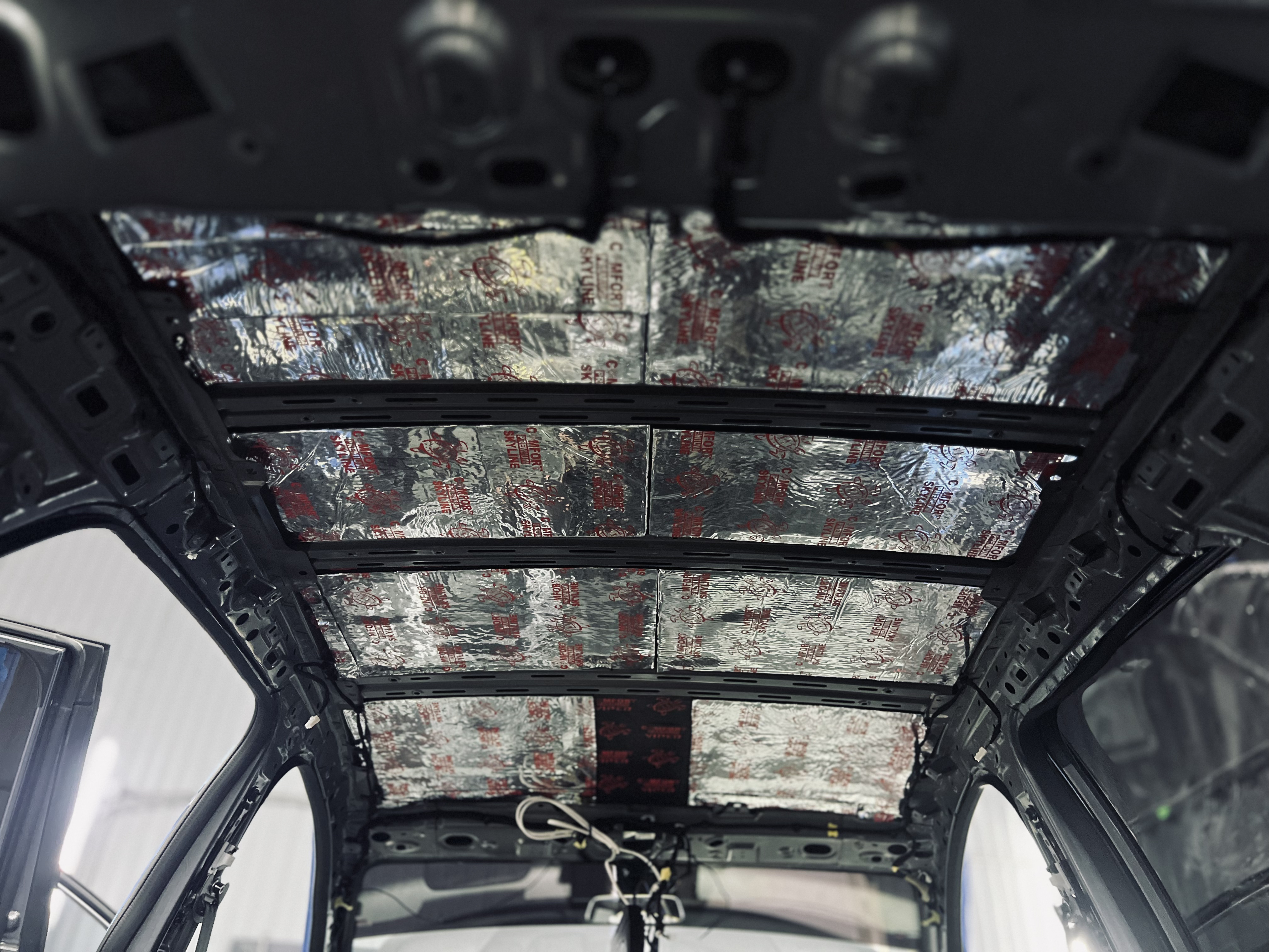 Крыша автомобиля часто пропускает шум ветра и дождя. Мы обработали ее в два слоя, чтобы обеспечить тишину в салоне даже в непогоду.