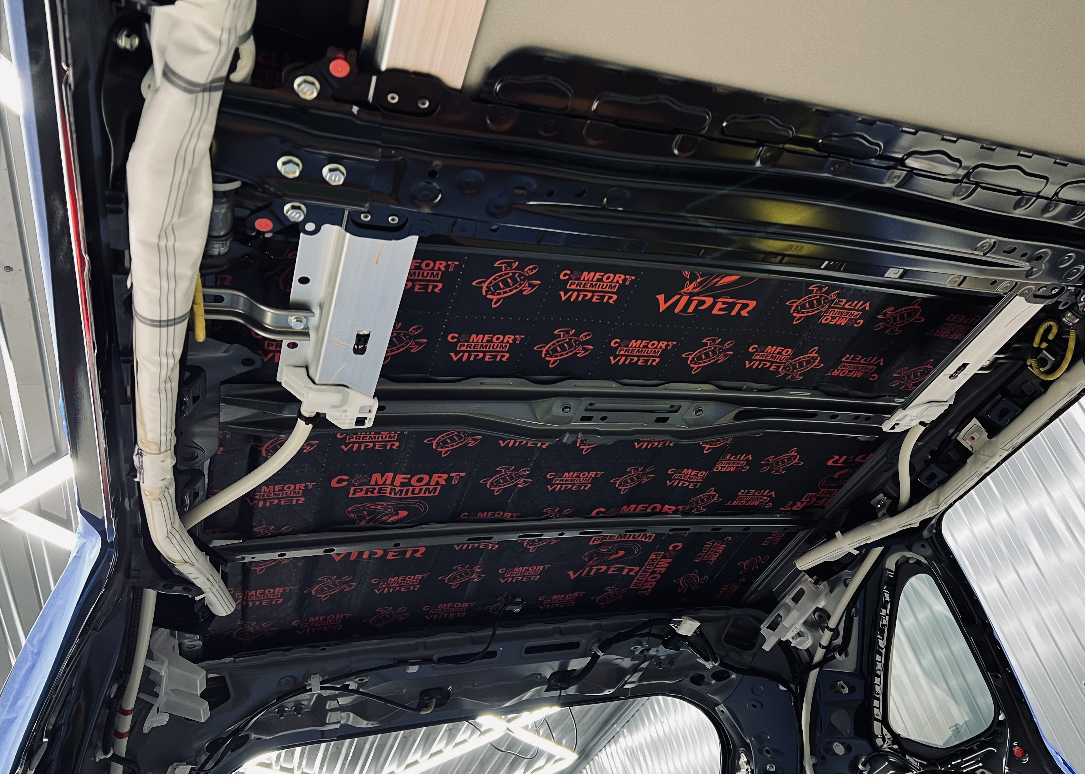 Крыша автомобиля часто пропускает шум ветра и дождя. Мы обработали ее в два слоя, чтобы обеспечить тишину в салоне даже в непогоду.